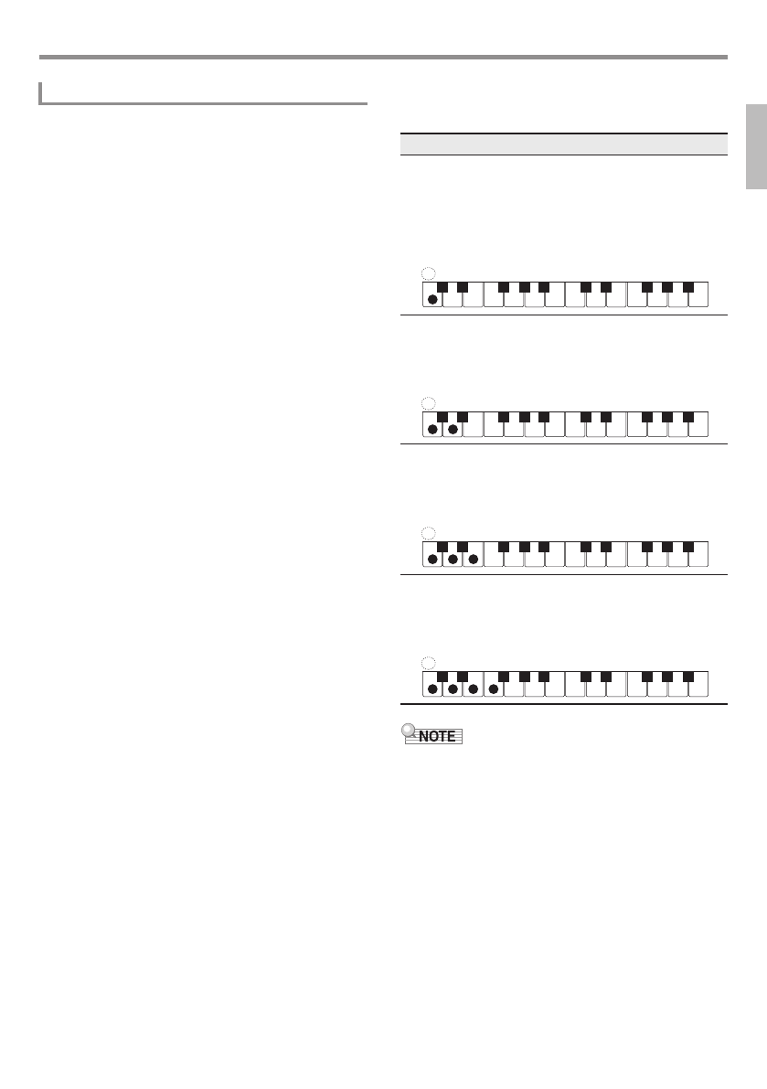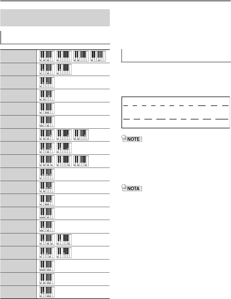 •Debido a que el rango de entrada de acordes es limitado, es posible que este modelo no admita algunos de los acordes mostrados arriba.