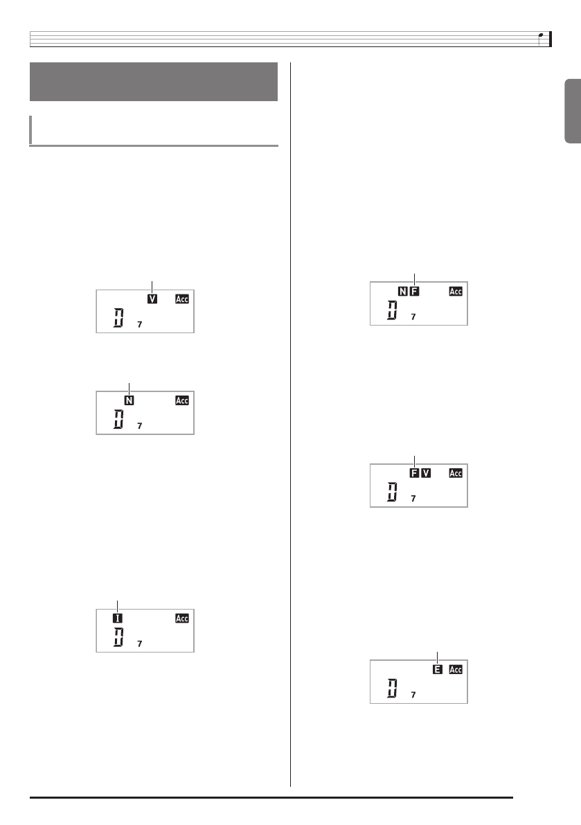 • Poiché la gamma d’introduzione degli accordi è limitata, questo modello potrebbe non supportare alcuni degli accordi mostrati sopra.