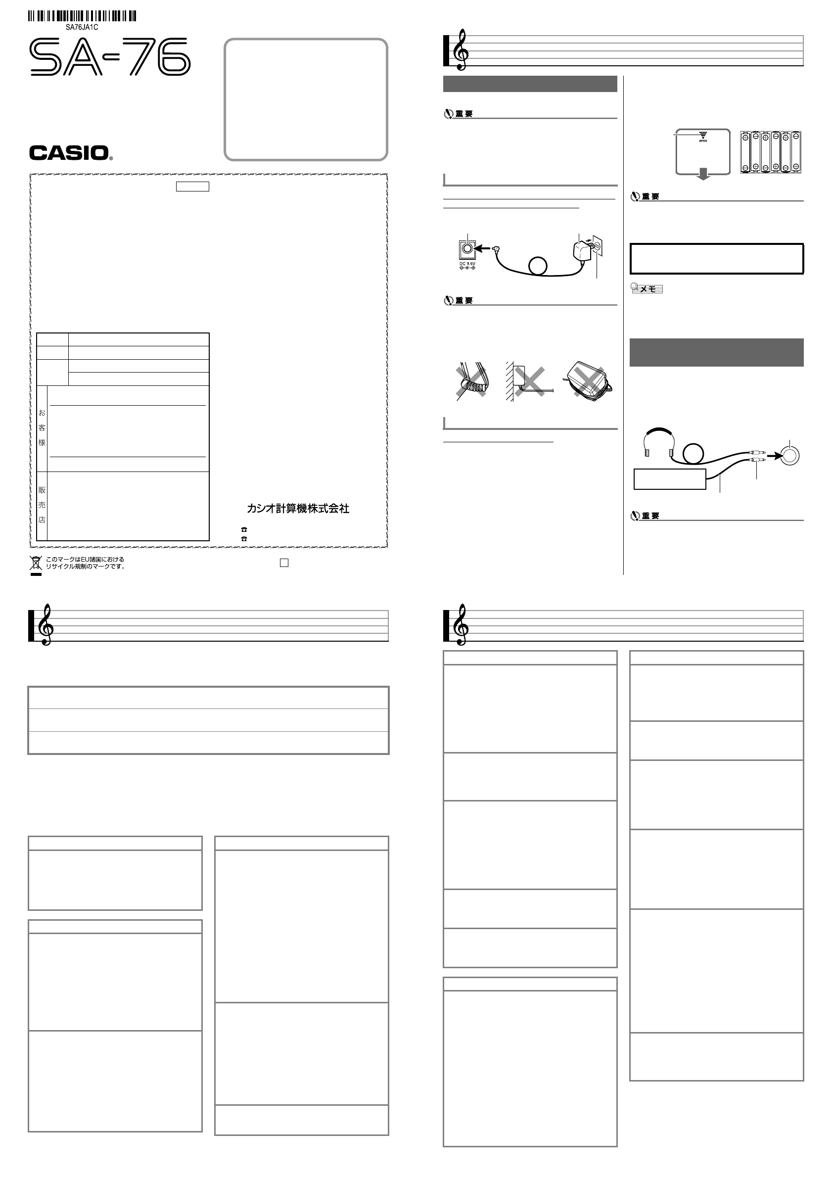 User Manual: Casio SA-76 SA-76 | 取扱説明書 | 電子楽器 | お客様サポート | CASIO