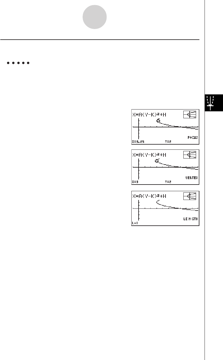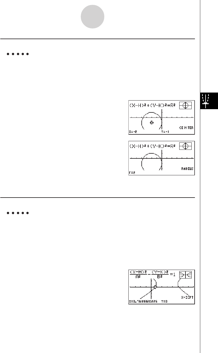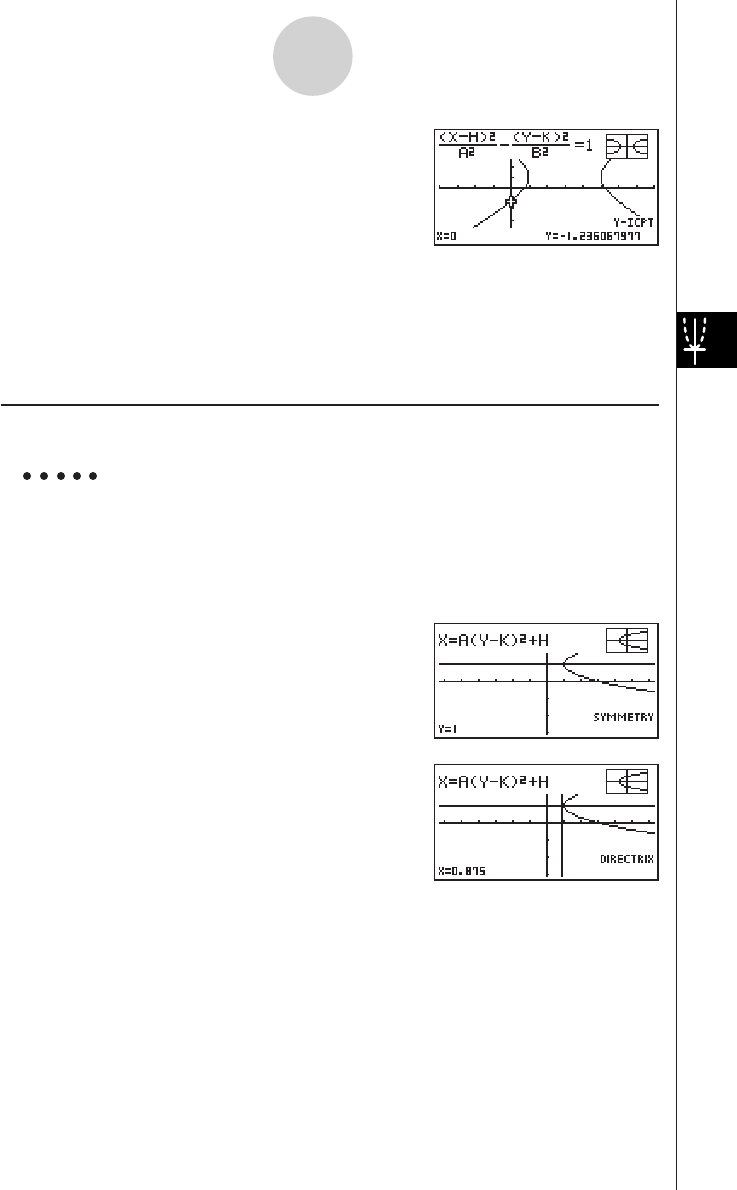 •When calculating two vertexes for an ellipse or hyperbolic graph, press e to calculate