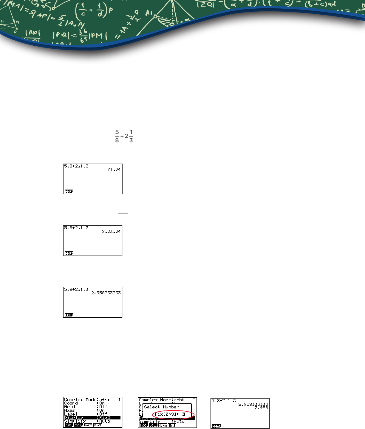 1. When performing general computations, select z to enter fractions and mixed numbers.