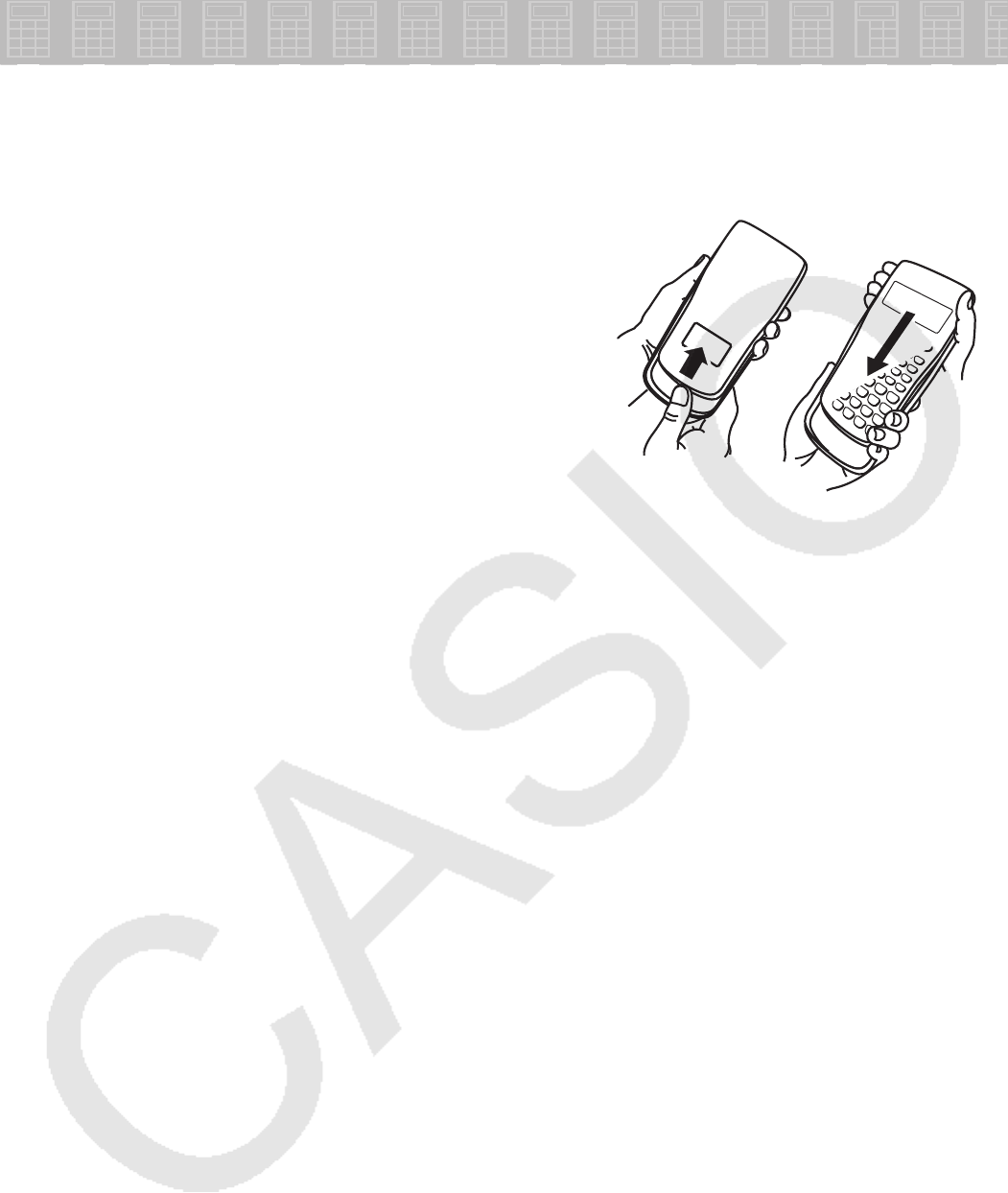 Lepaskan wadah keras dari belakang kalkulator, pasangkan kembali wadah keras ke