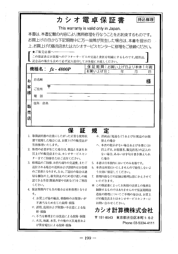 User Manual: Casio fx-4800P fx-4800P | 取扱説明書 | 電卓・関数電卓 | お客様サポート | CASIO
