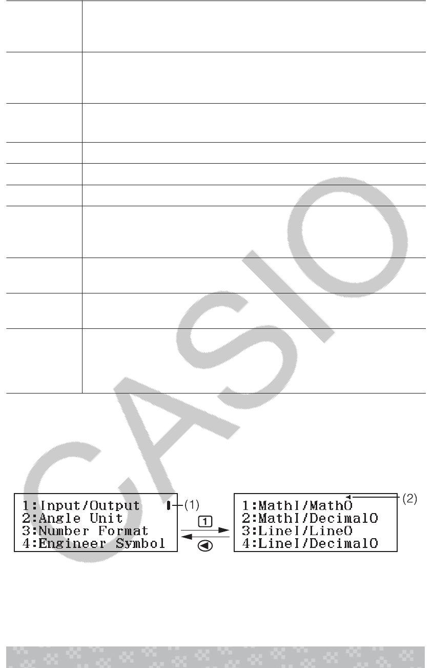 innstillingen for Input/Output i oppsettmenyen til MathI/DecimalO.
