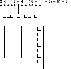 in het geval van ^(xy), xy, x!, 3 , nPr, nCr, enz.)