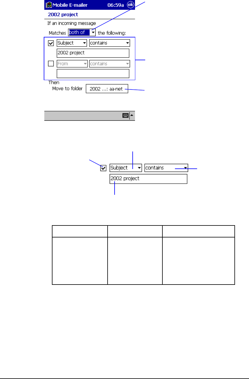 l Set up of up to 10 filters for grouping incoming e-mail according to subject, content,