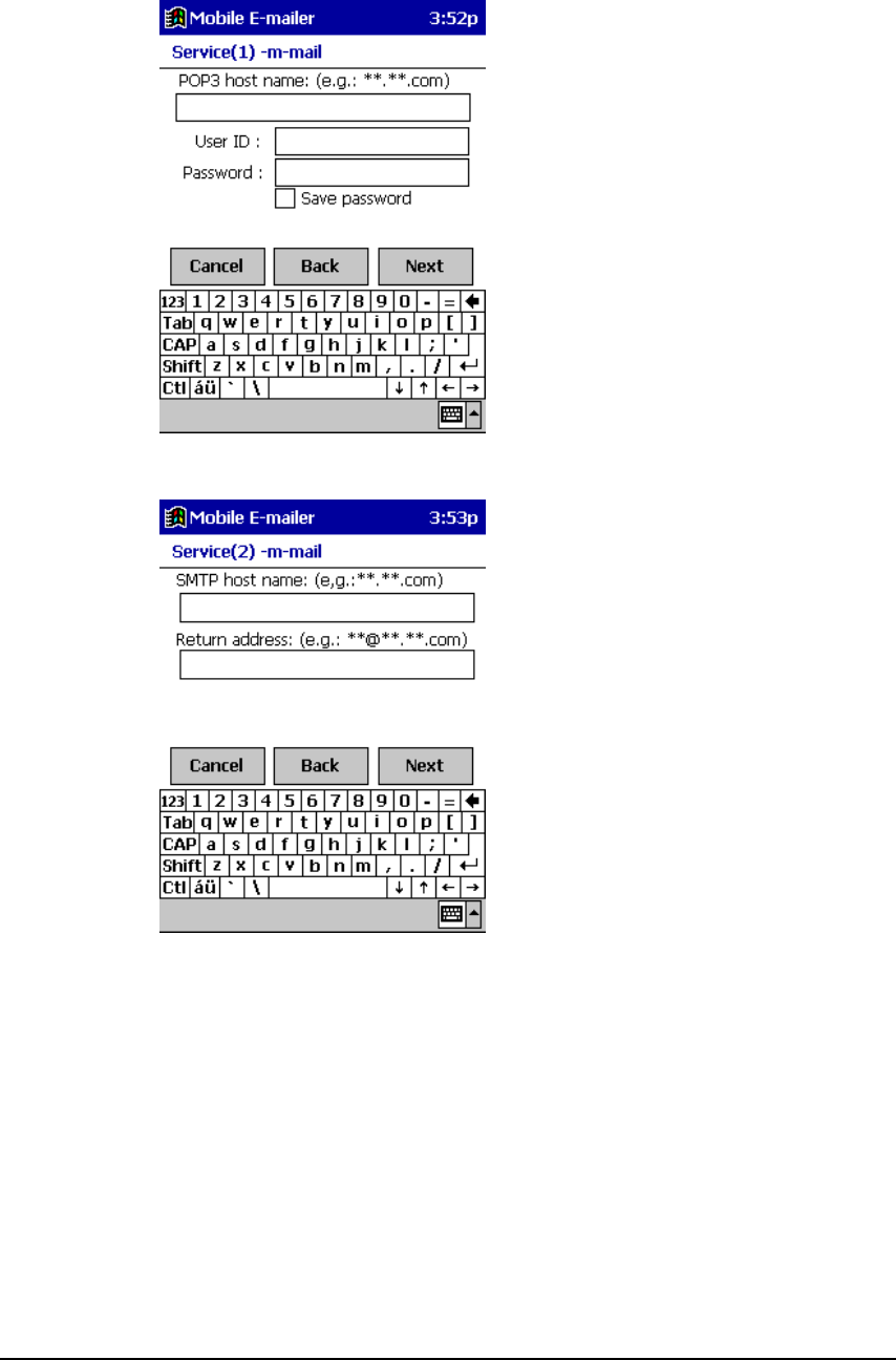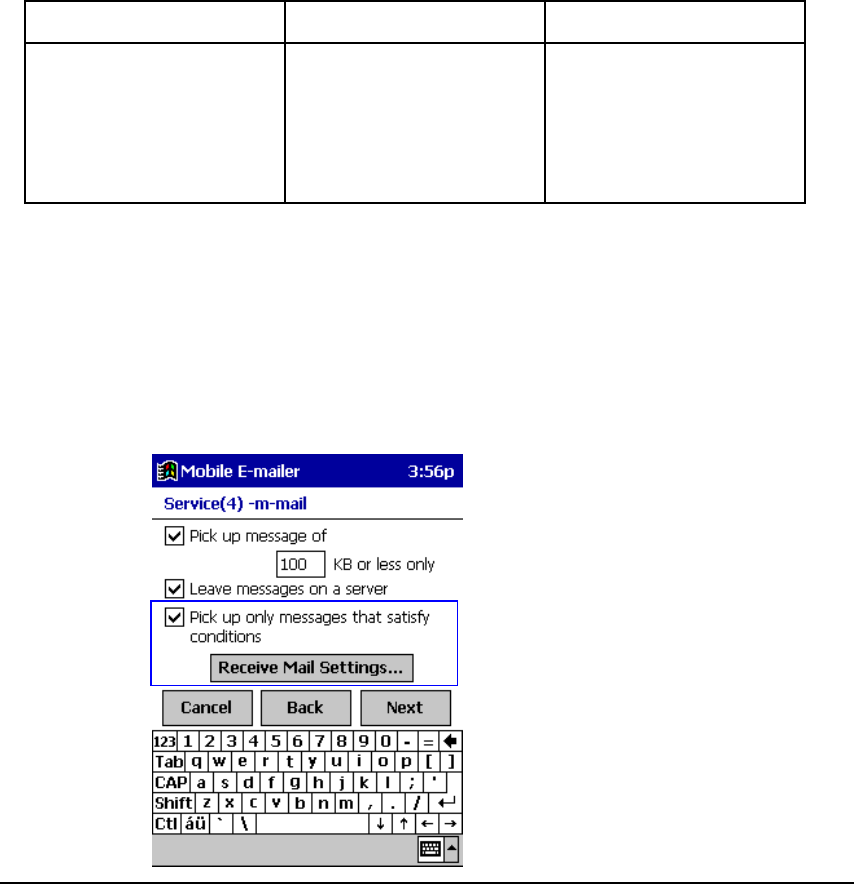 Mobile E-mailer supports e-mail with a POP3 mail server. Mobile E-mailer does not