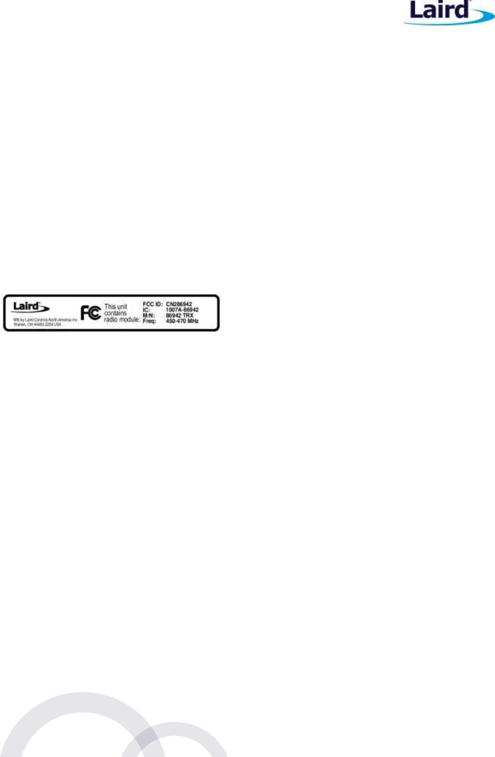 86942TRX module meets Part 90 of the FCC rules and regulations. Compliance with the labeling requirements,