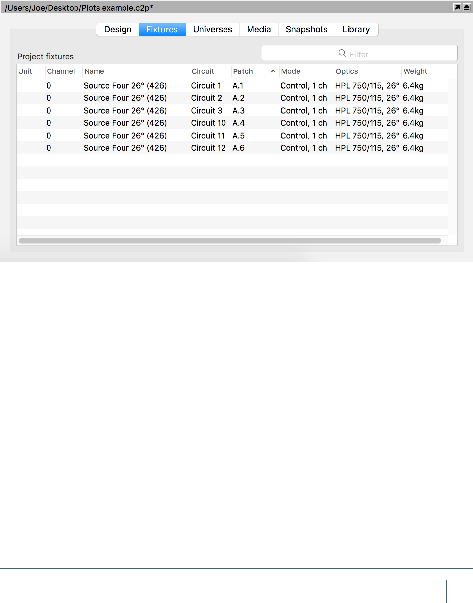 a CSV le of the xtures in the project and their associated