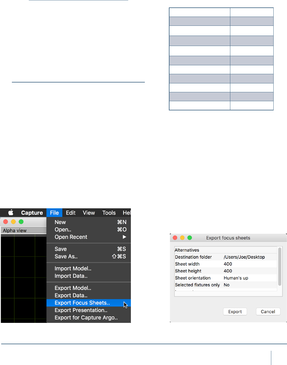 The export focus sheets feature creates a set of images,