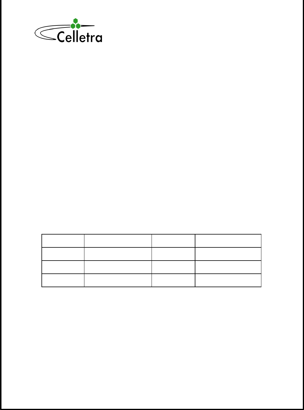 Changes or Modifications not expressly approved by Celletra Ltd.