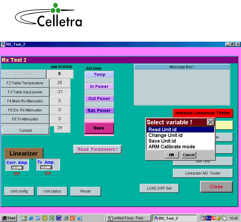 “Read Unit id” and click OK. The Unit ID number will be displayed in the first row of the