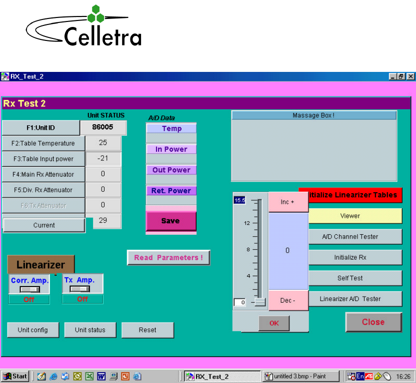 clicking on the Inc+ or Dec – buttons. When the desired attenuation is set click OK in the