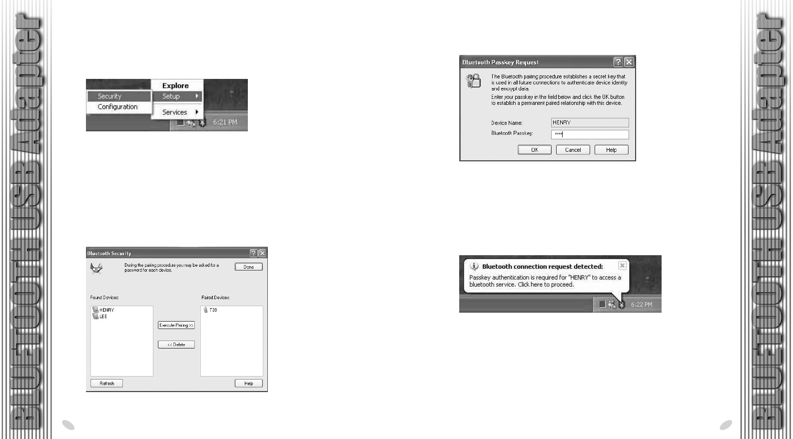 1. Right-click on the Bluetooth Icon, then click on Setup, and Security.