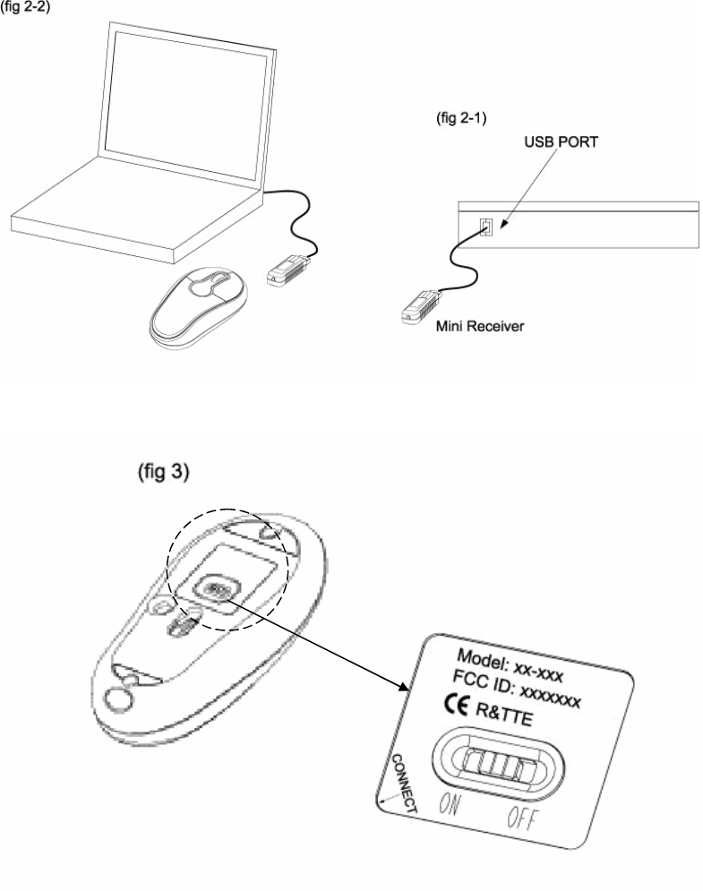 1. Connect the mini receiver to any available USB port. (Fig. 2-1) Refer to the