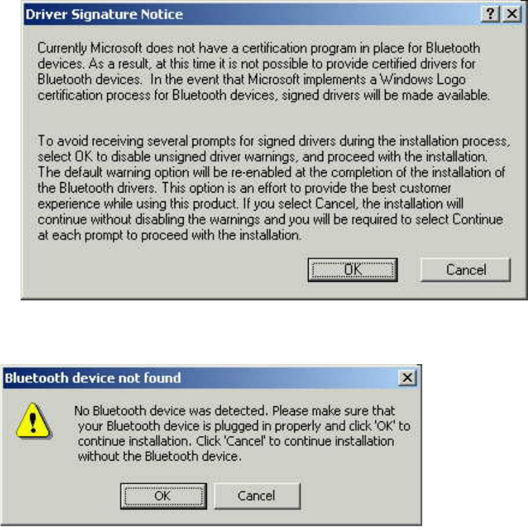 8. Installation program will ask you to plug in Bluetooth Adapter. Please click