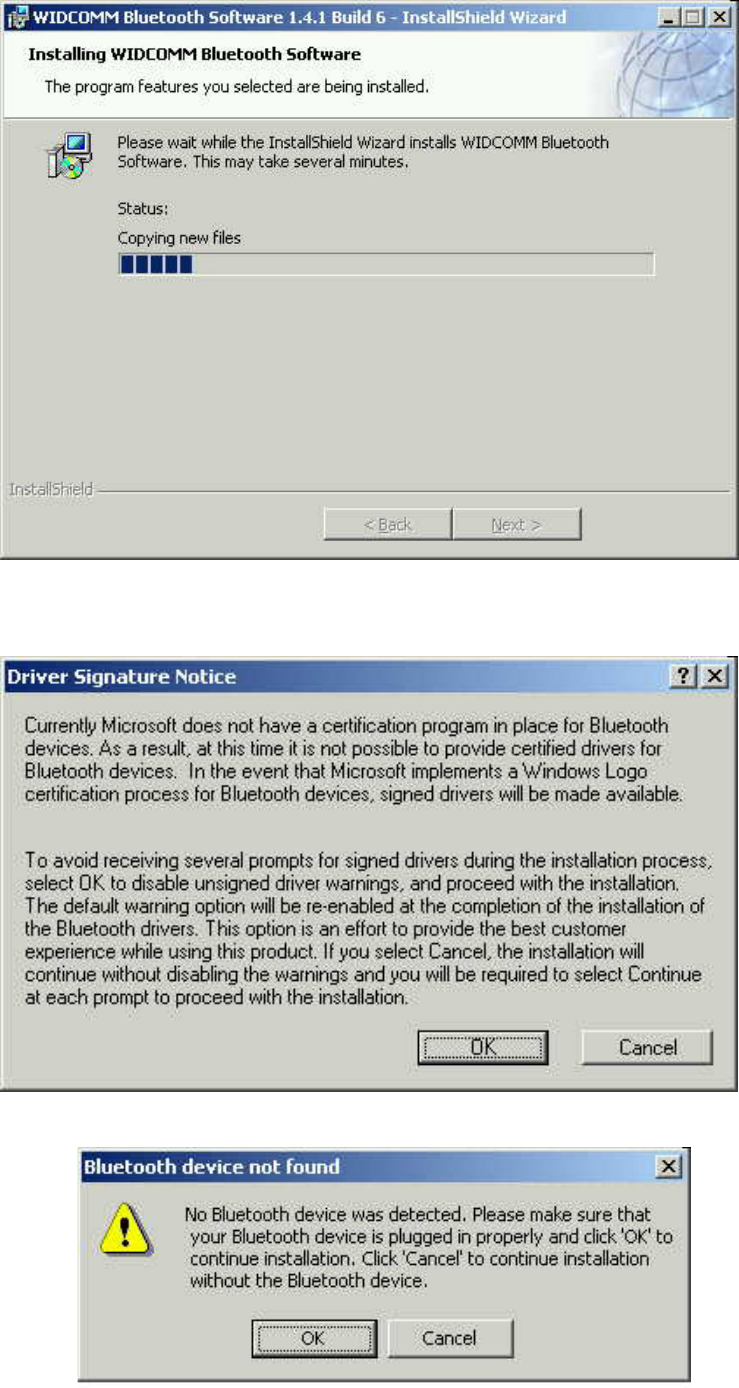 installation CD. Double click it to start the installation. The Bluetooth InstallShield