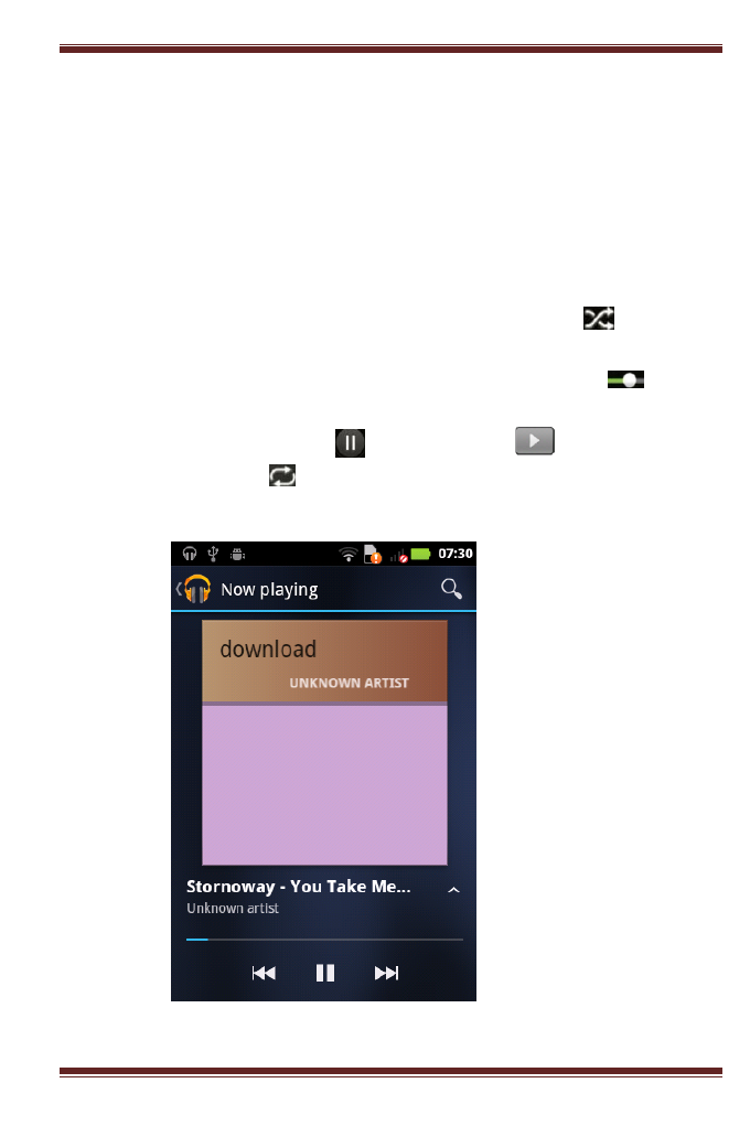 Shuffle songs:Shuffle songs in random order. Touch to toggle