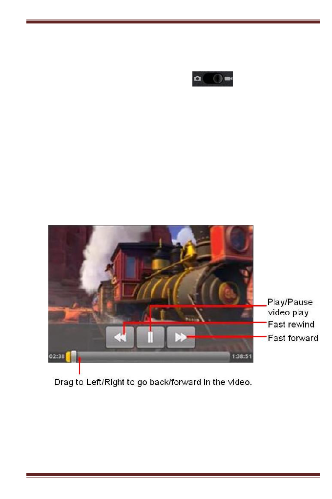 In video mode, touch icon to record a video.