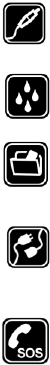 The cellular phone, the battery and the charger are not waterproof. Do not use them in places with high