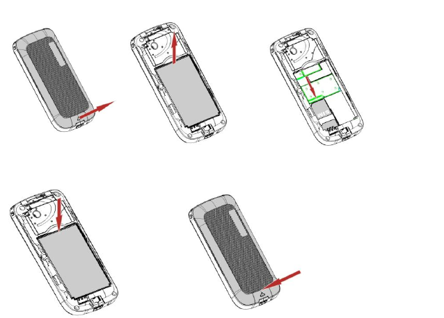 2.1.1 Remove the back cover(1), remove the battery (2), and insert the SIM card (3)