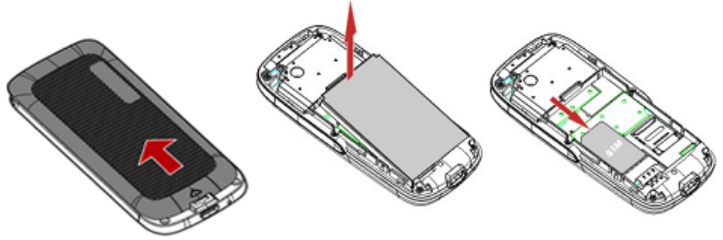 2.1.1 Remove the back cover(1), remove the battery (2), and insert the SIM card (3)