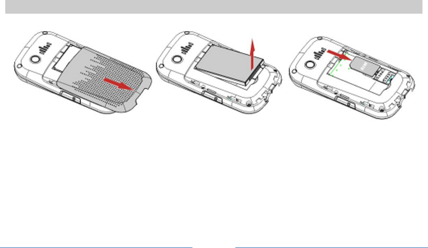 Remove the back cover(1), remove the battery (2), and insert the SIM card (3)