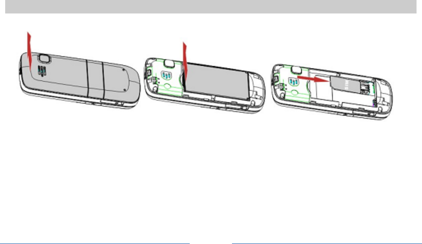 Remove the back cover(1), remove the battery (2), and insert the SIM card (3)