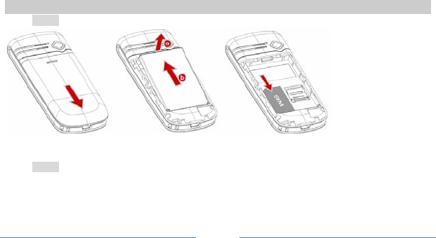 2.1.1 Remove the back cover(1), remove the battery (2), and insert the SIM card (3)