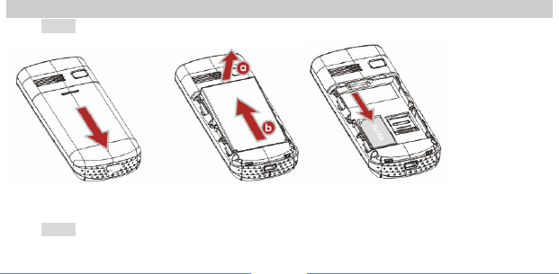 2.1.1 Remove the back cover(1), remove the battery (2), and insert the SIM card (3)