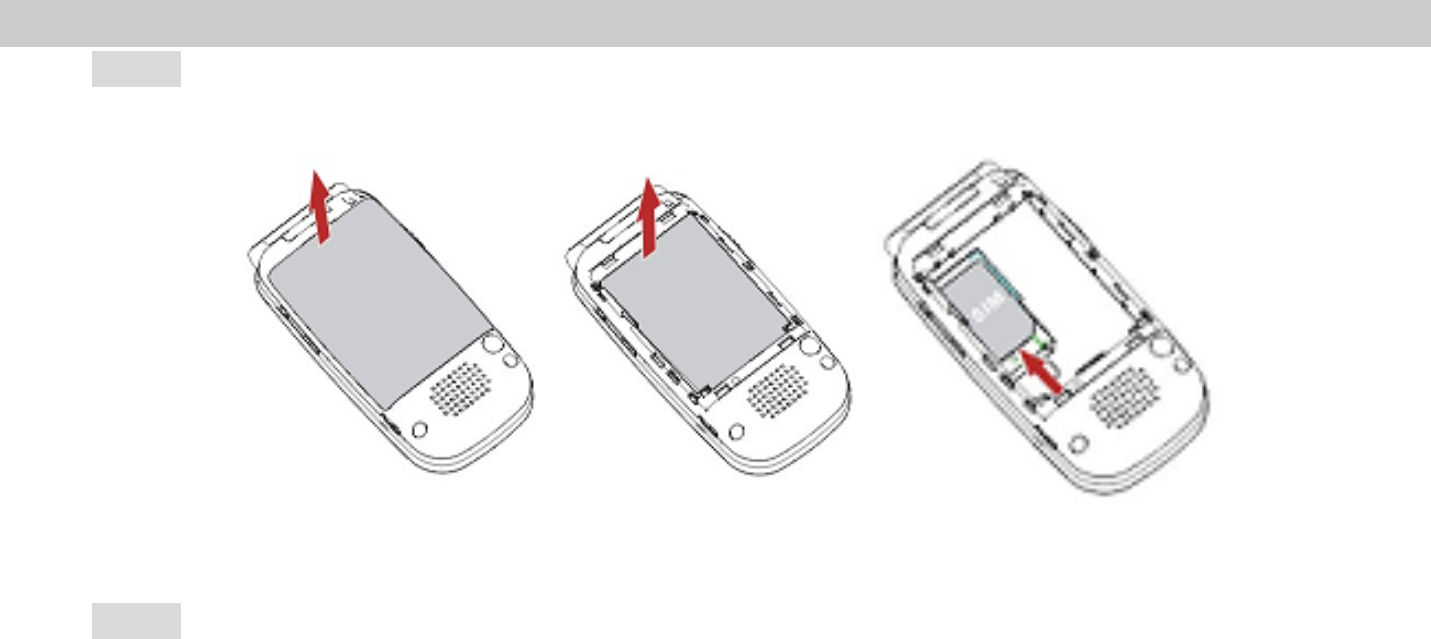2.1.1 Remove the back cover(1), remove the battery (2), and insert the SIM card (3)