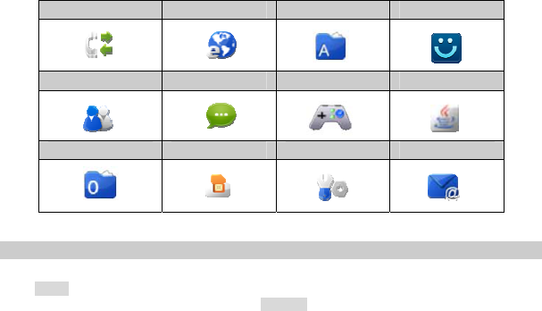 In idle mode, press to enter the Main menu. Press to access the option listed directly