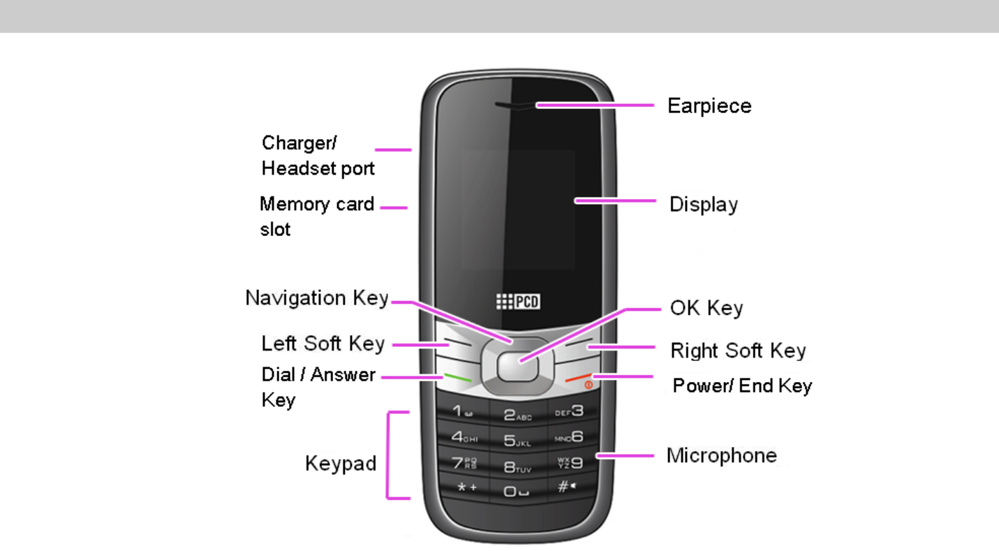 1. Ensure the battery is inserted in the handset. Connect the charger to the charger port on the
