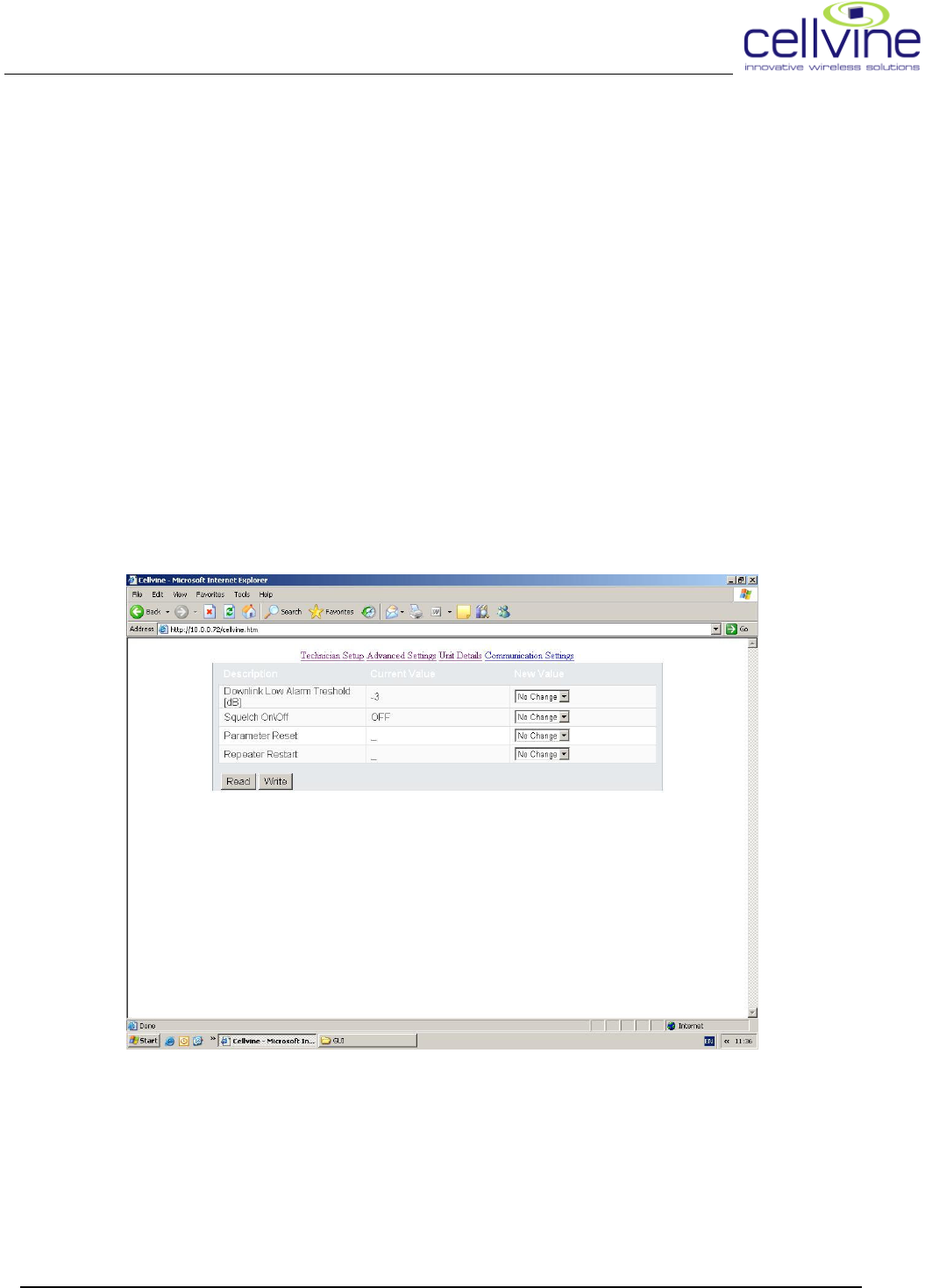 In this screen the user sets the general setting of the repeater
