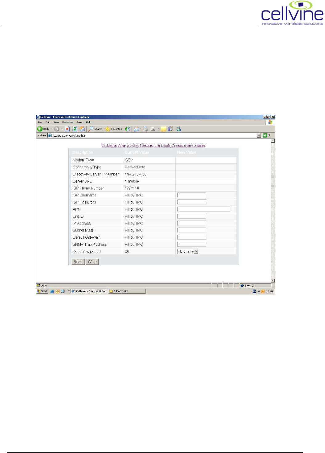 operator; if the server IP has changed the technician can set it