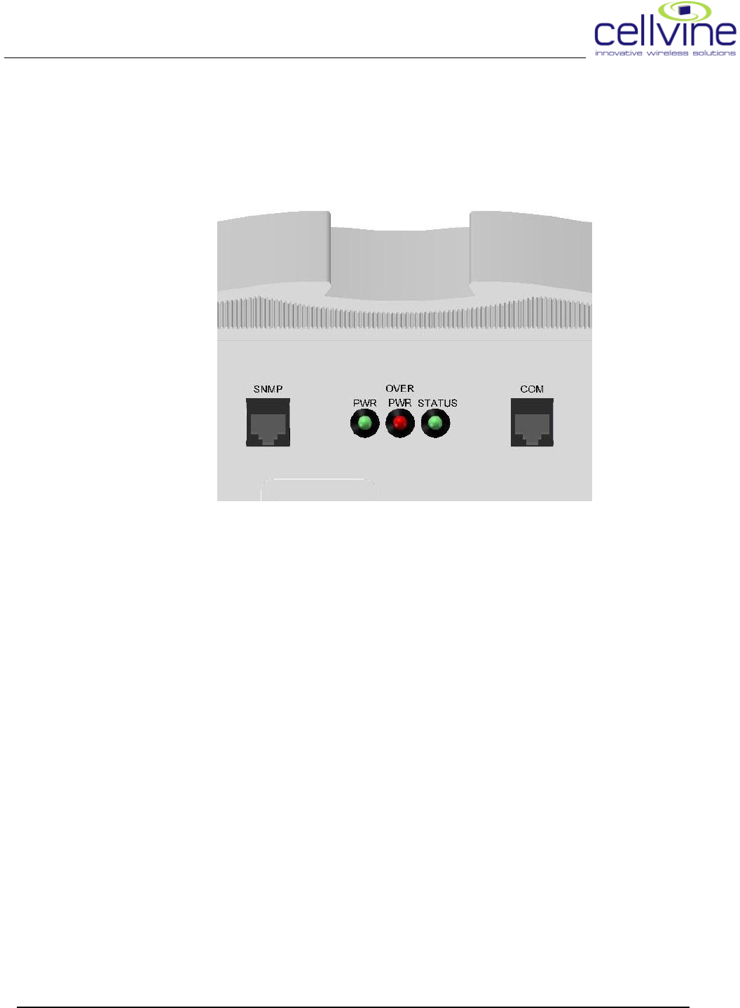 A high downlink red "OVER PWR" LED lights up on the alarms panel of the