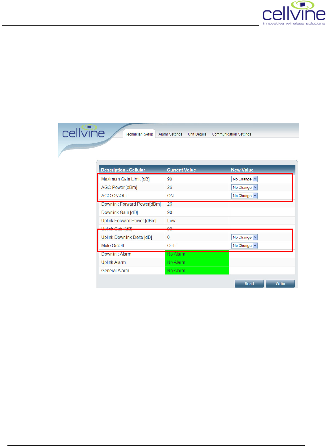 forward power is at least 3 dBm lower than the AGC power parameter. The