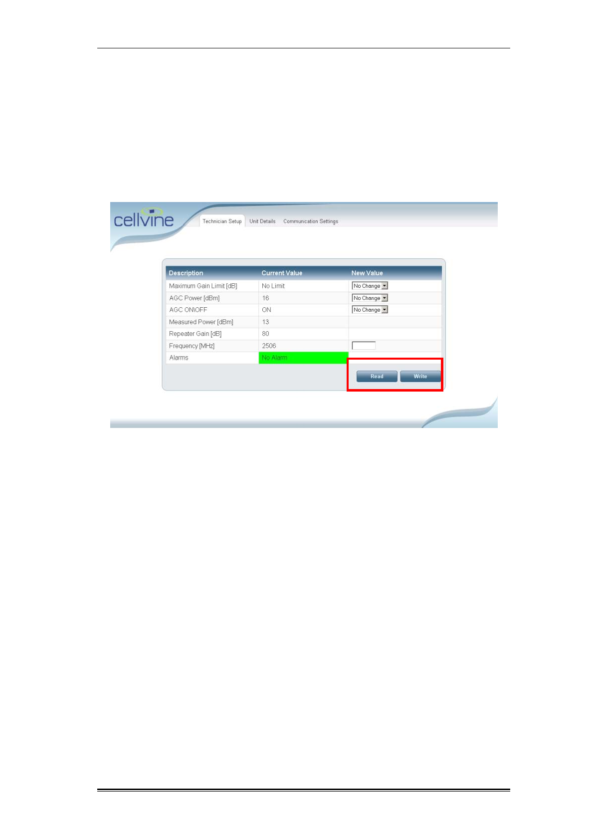 2. On the Cellvine application screen, in the Alarms Current Value column of the