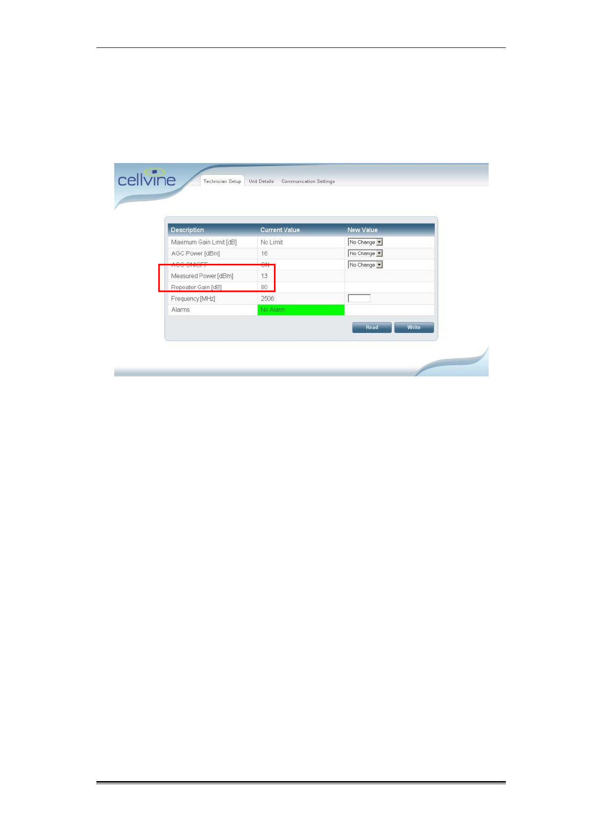 the "Measured Power" parameter screens, is less the 13 dBm. A "Low Signal"