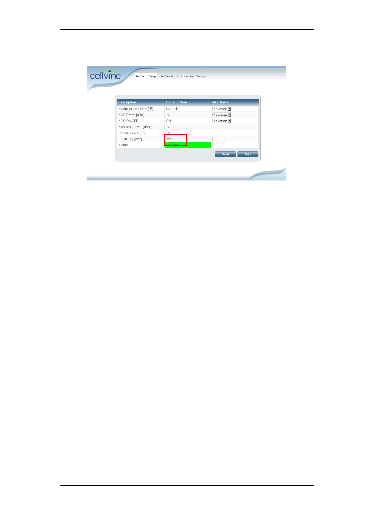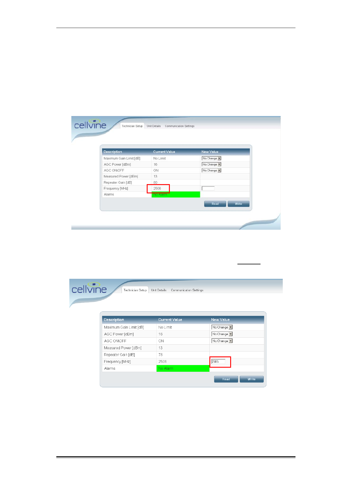 Figure 29: Technician Setup Screen – Adjusting frequency values