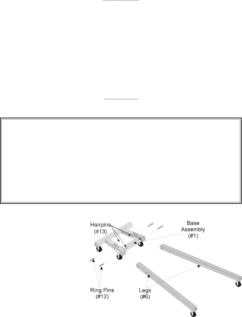 Step 1: Using four RING PINS (12), assemble the LEGS (6) to the BASE ASSEMBLY (1) - see