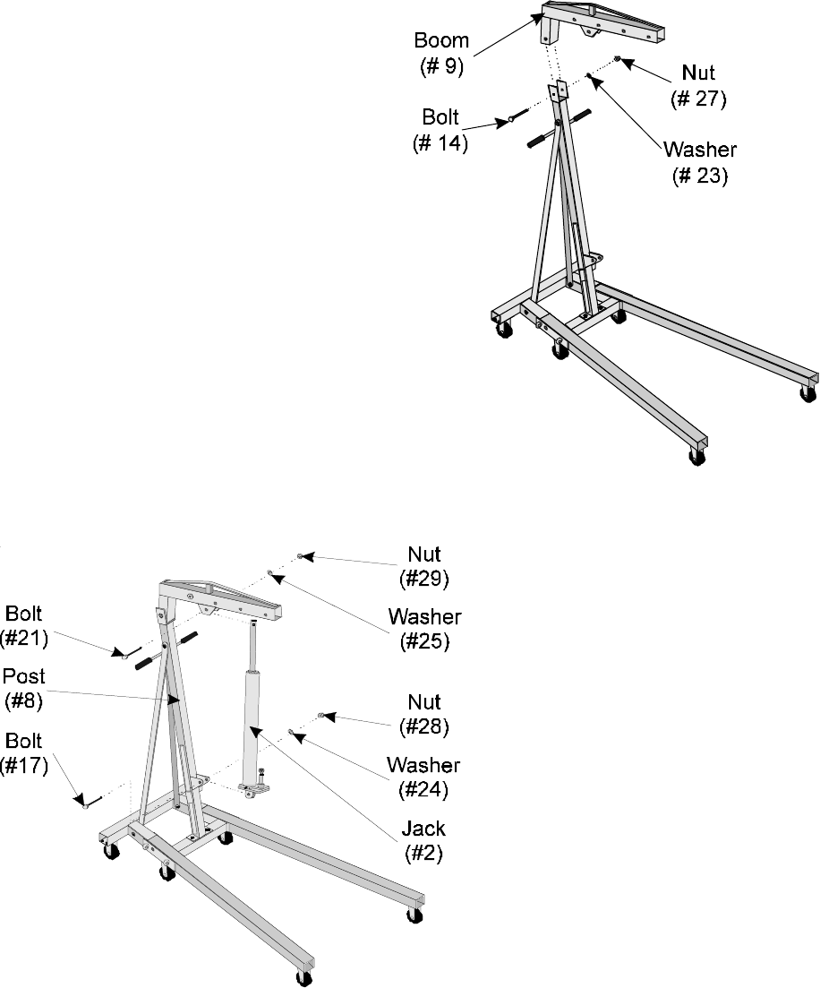 For safety and ease of assembly, use two people to assemble the Shop Crane.