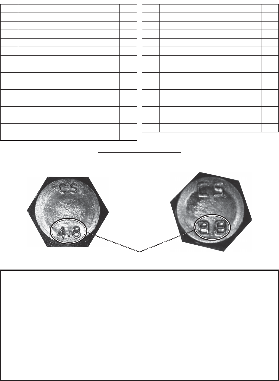 on the page 10 to make sure that the correct bolts are used in the correct place.