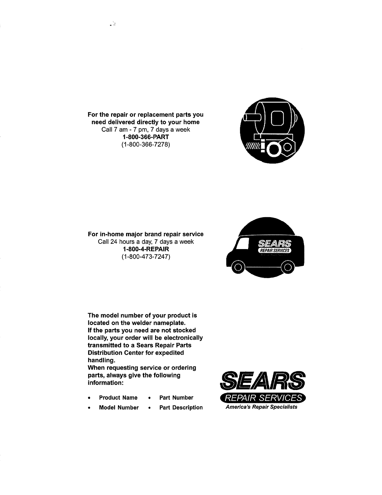 transmitted to a Sears Repair Parts
