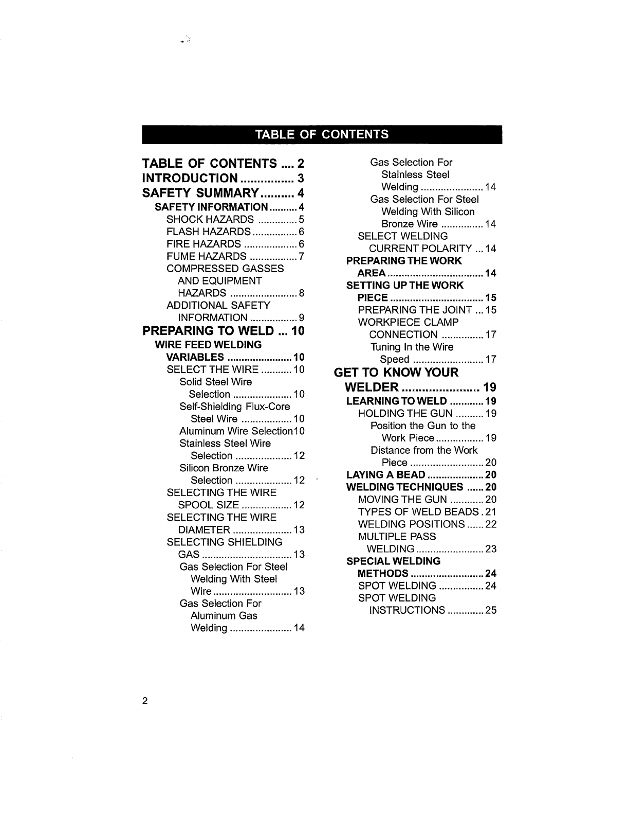 WELDER ....................... 19