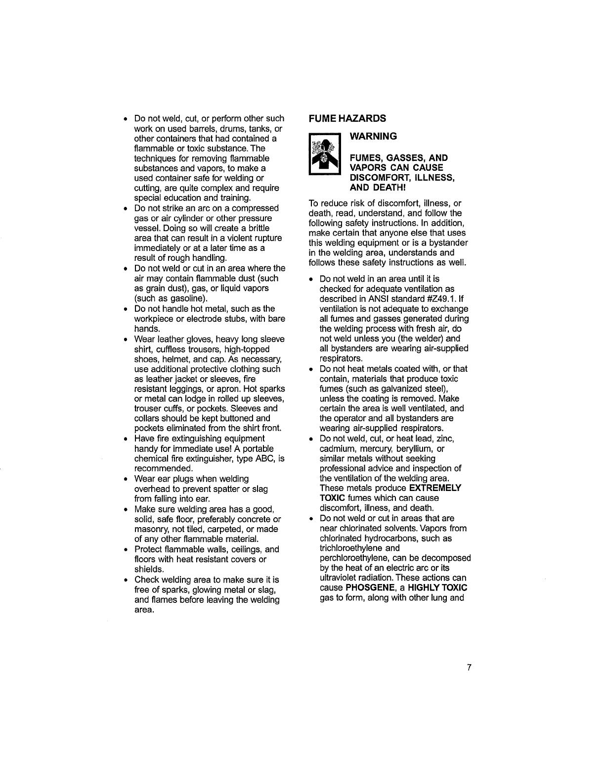 FUME HAZARDS ................. 7