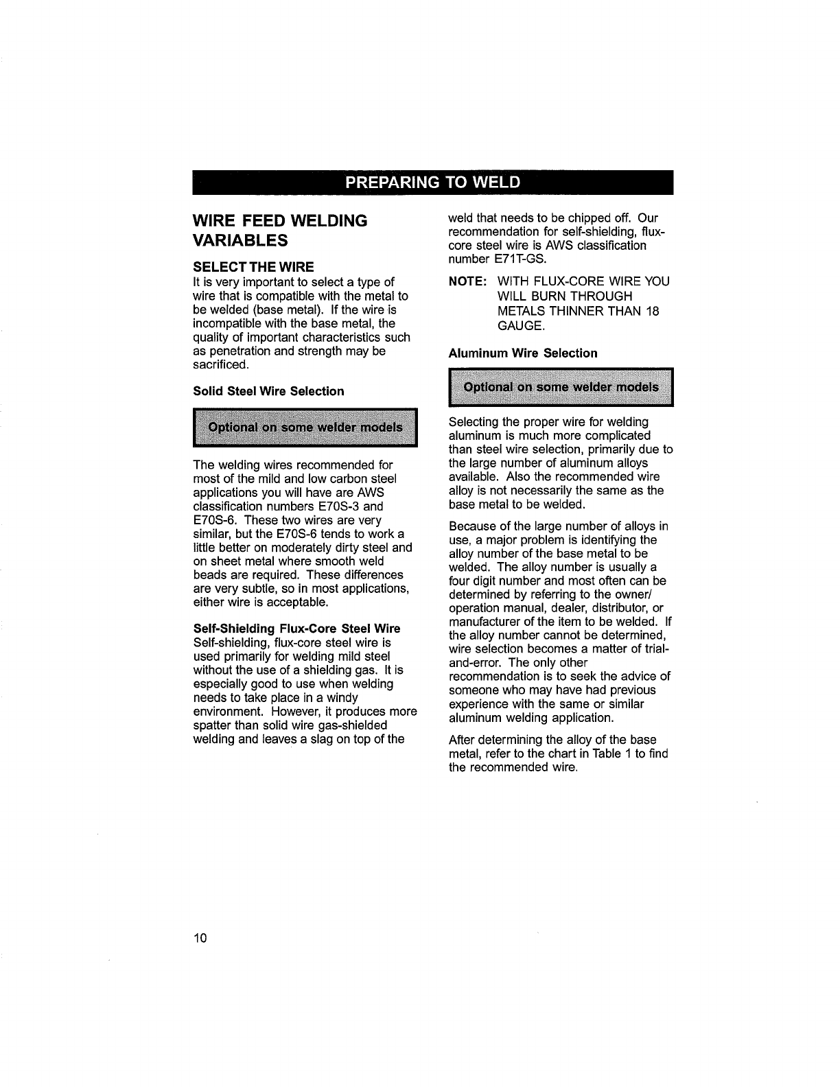 self-shielding flux-core wire.