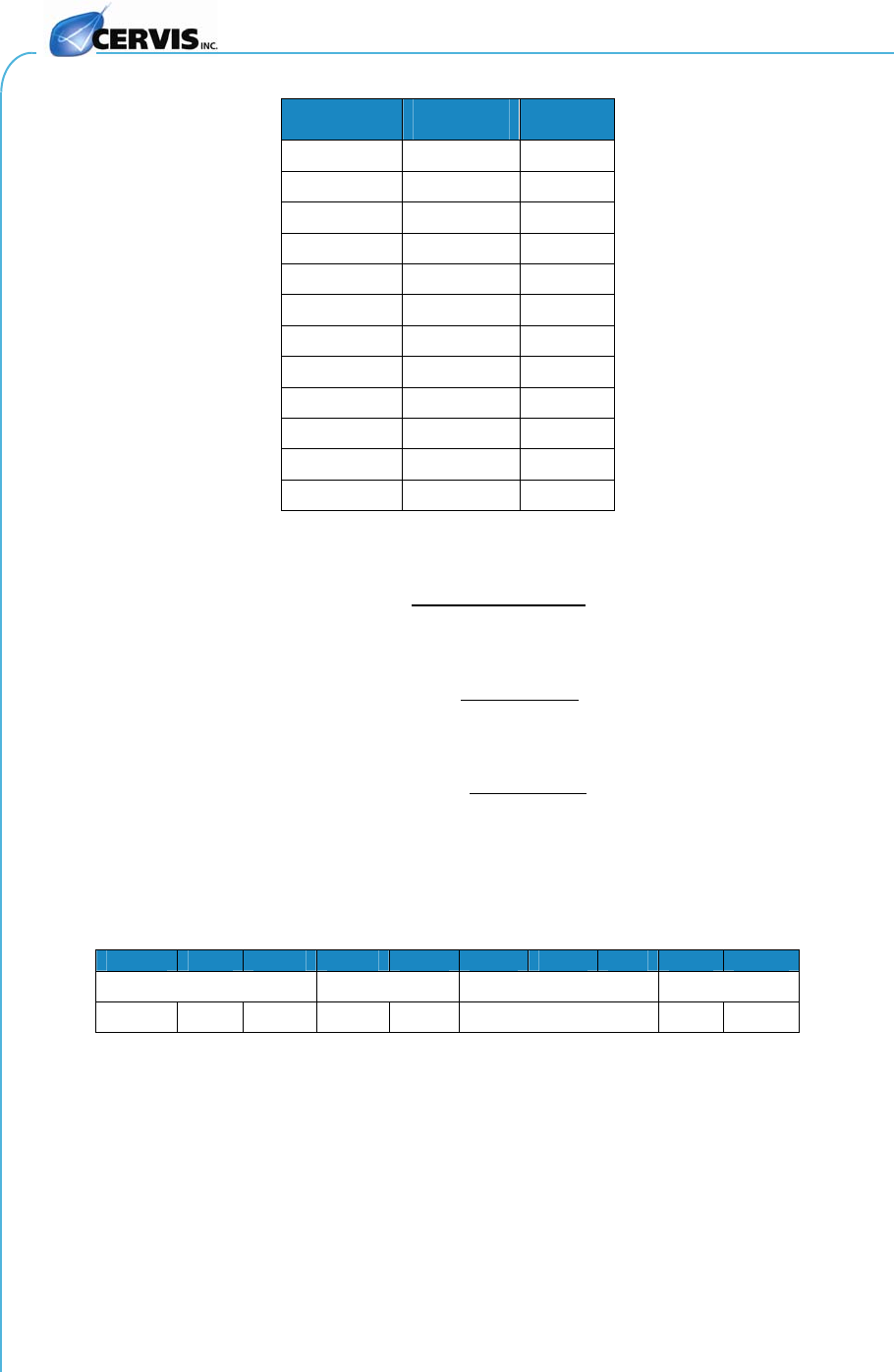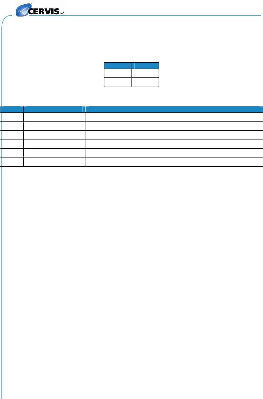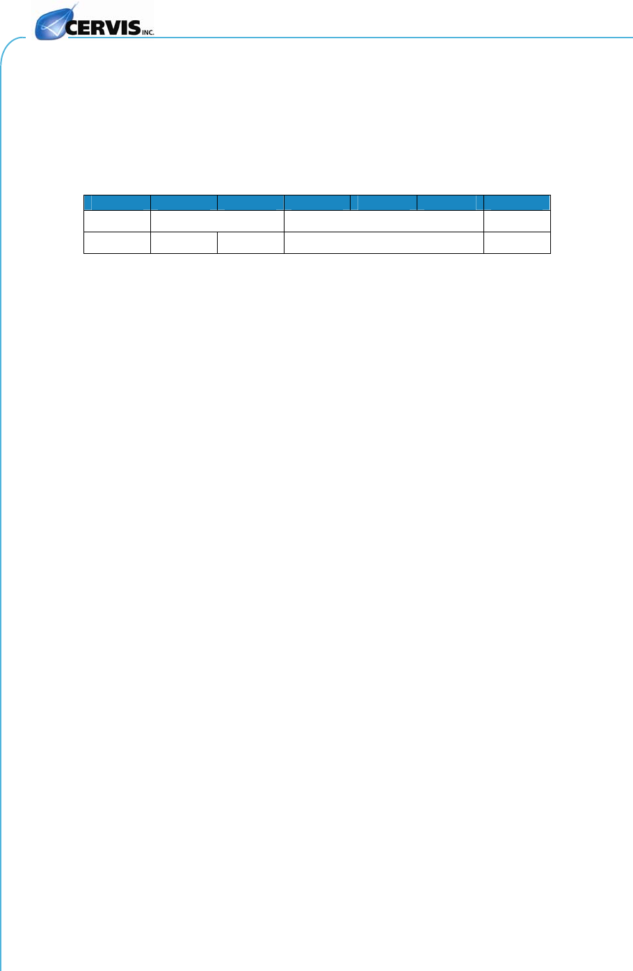 This document is the property of Cervis, Inc. and cannot be copied, modified, e-mailed, or reproduced