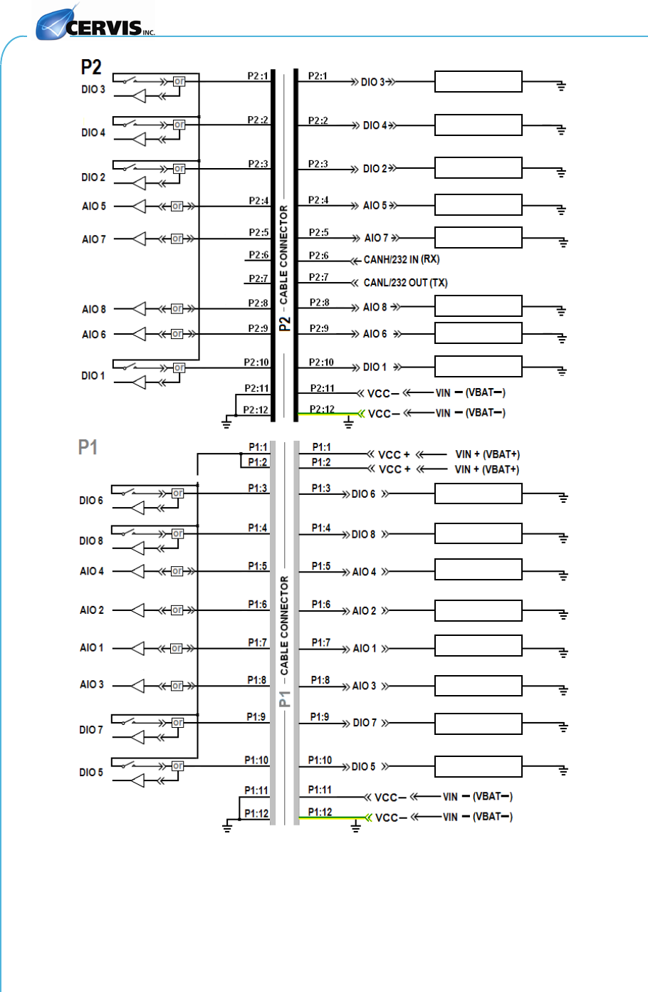 P1:6 6 AIO 2 P2:6 6 CANH/232 IN (RX)