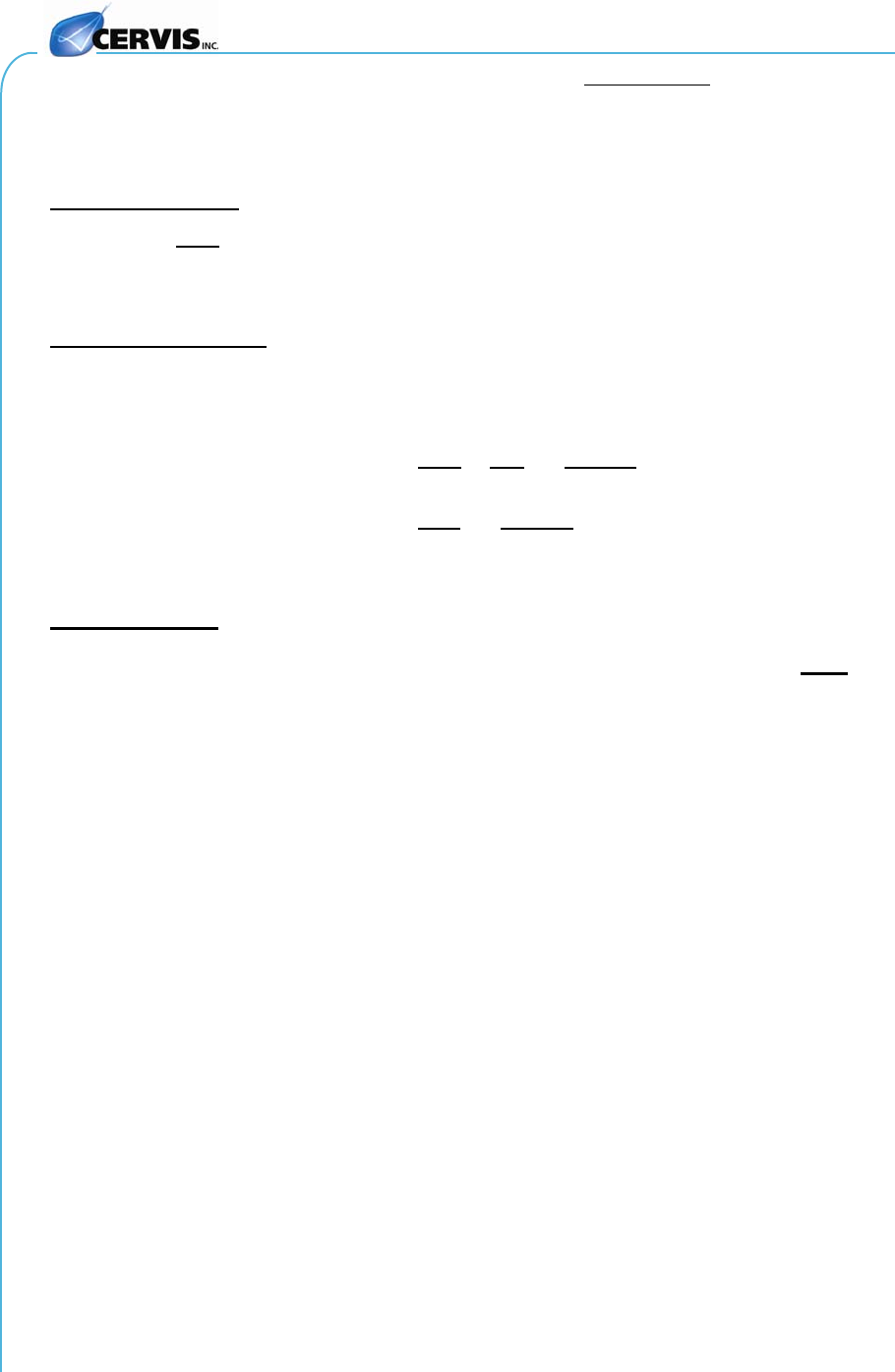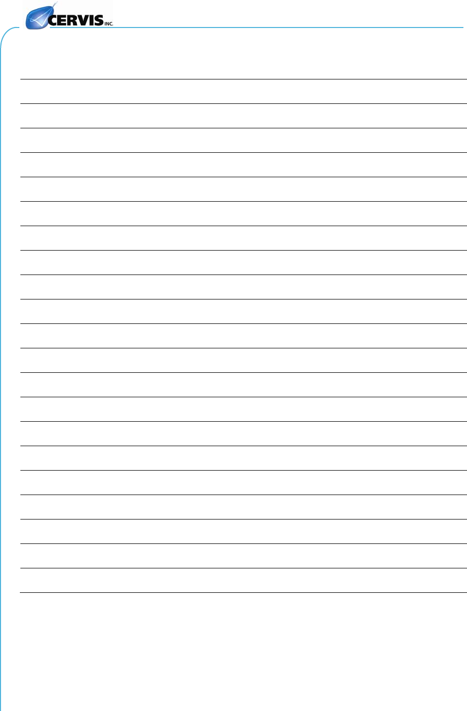 This document is the property of Cervis, Inc. and cannot be copied, modified, e-mailed, or reproduced